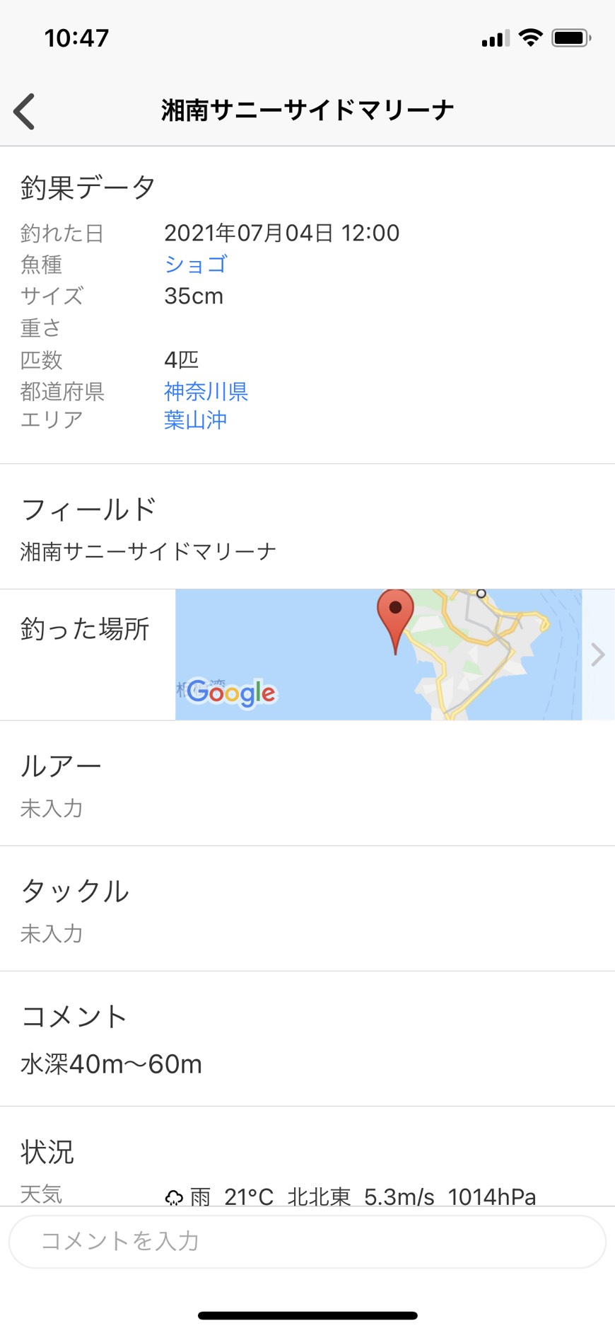 また各釣果に対してコメント欄があるので、気になる投稿に釣果の場所や、仕掛けなどを
