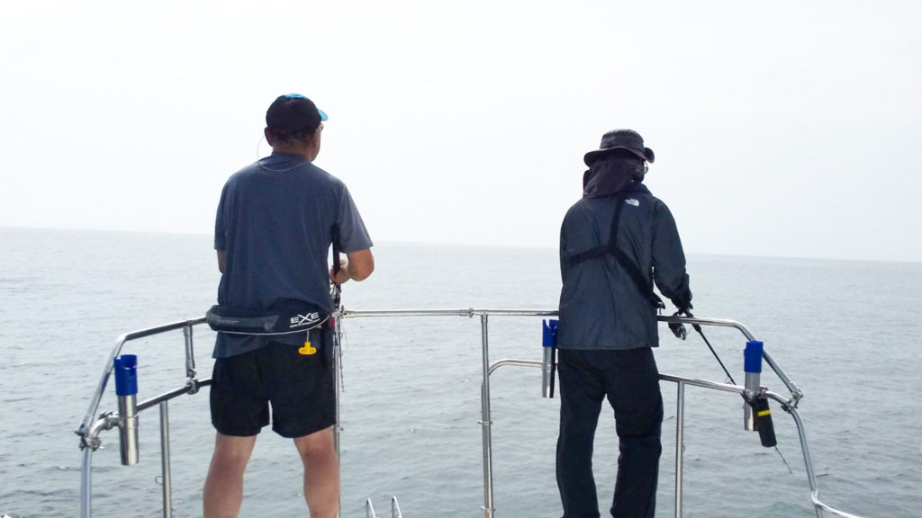 今回は、早朝出港!まずは、吉野瀬沖へ向かいました。事前に調べたところ、水深30~35mのところでイサキがよく釣れているとのことだったのでイサキメインで釣りを開始しました。